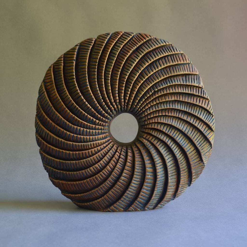 La clave de su estilo reside en la superficie. Para crear ese efecto de haber sido extraídas de la tierra o castigadas por el tiempo, Cabo no utiliza esmaltes convencionales, sino pátinas, óxidos metálicos y engobes. La adición de chamota (arcilla cocida molida) o arena volcánica a la pasta le confiere la textura áspera y porosa que dota a sus esculturas de esa innegable sensación de antigüedad y tacto terroso.