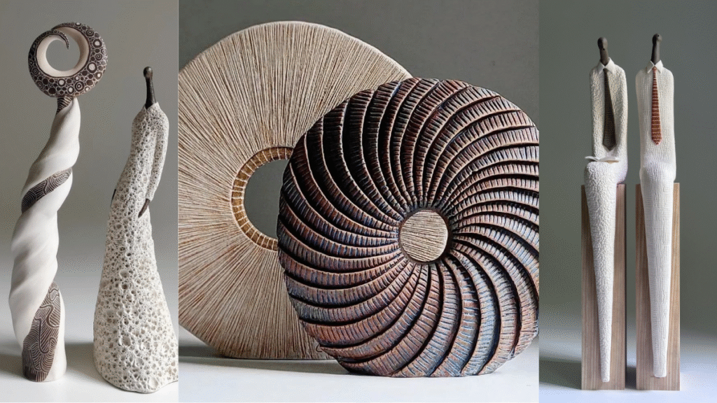 La clave de su estilo reside en la superficie. Para crear ese efecto de haber sido extraídas de la tierra o castigadas por el tiempo, Cabo no utiliza esmaltes convencionales, sino pátinas, óxidos metálicos y engobes. La adición de chamota (arcilla cocida molida) o arena volcánica a la pasta le confiere la textura áspera y porosa que dota a sus esculturas de esa innegable sensación de antigüedad y tacto terroso.