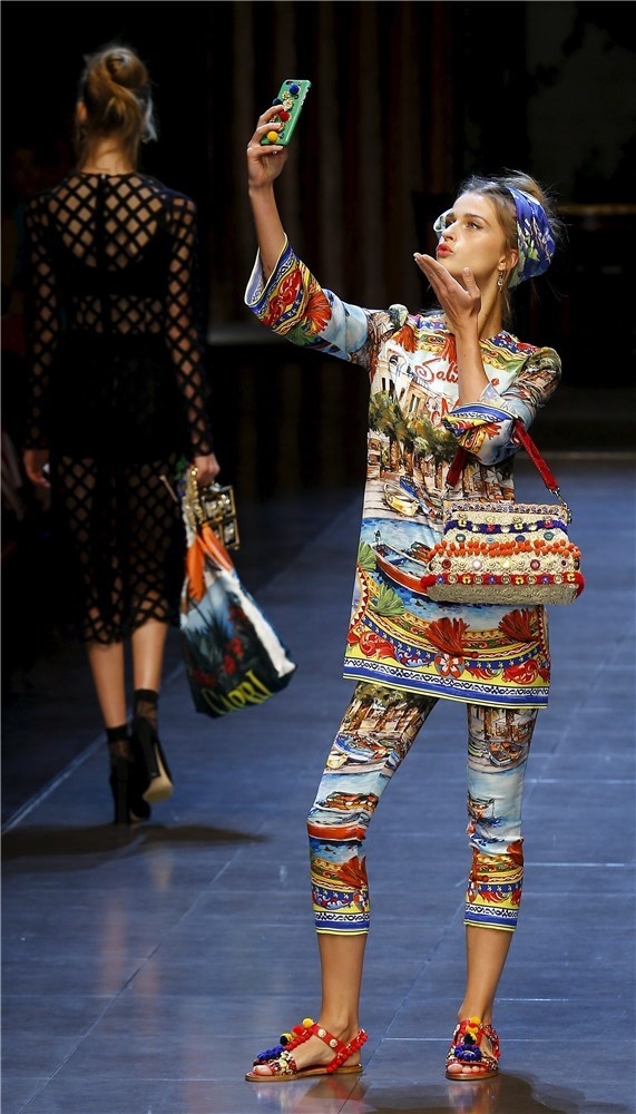 En su colección de Primavera/Verano 2016 Dolce & Gabbana crearon un escenario de una postal en vivo: Capri, Portofino, Portofino. Su leitmotiv «Italy is love», realizando un paseo por los rincones mas turísticos de Italia e incorporando un elemento del siglo XXI el móvil y «El selfie».