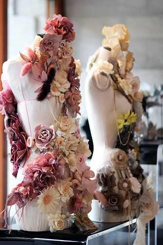 Las trabajadoras de tejido, llamadas «floristas«, utilizan la seda, el terciopelo, el encaje, la muselina, el percal y, a veces incluso plumas, pelo de PVC o de crin.