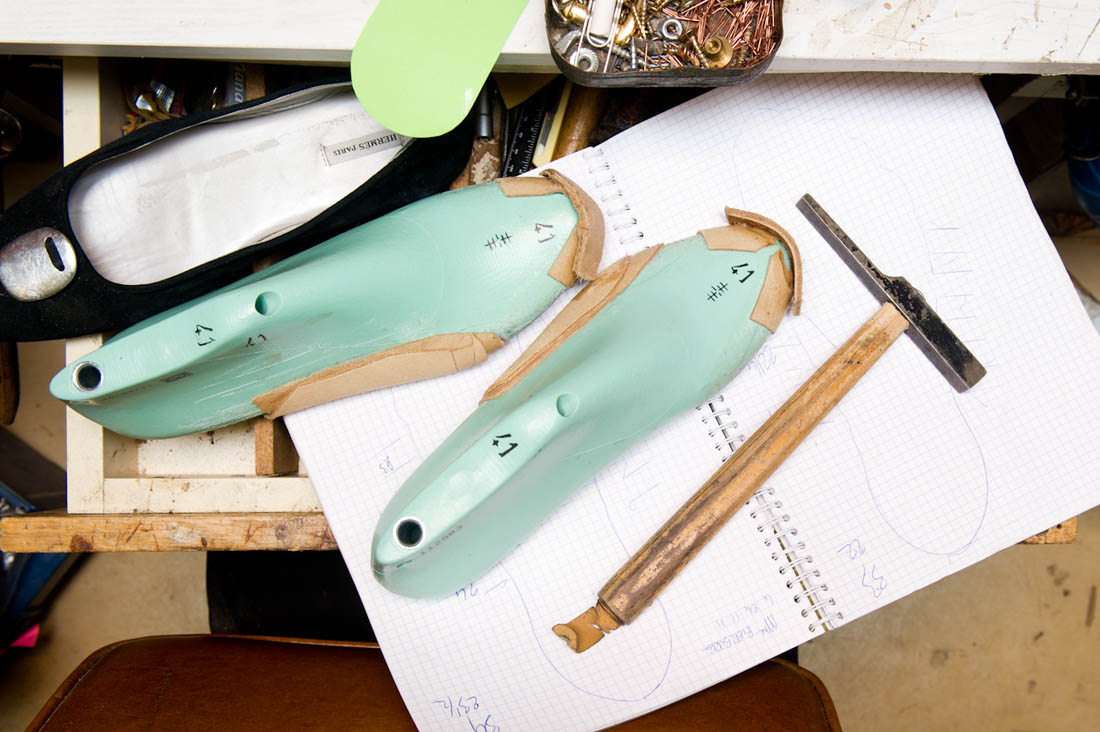Se toman las medidas necesarias como la altura del talón entre otras para fabricar un molde en madera de haya que servirá como base para las siguientes fases. Es una fase que necesita de 4 a 6 horas como mínimo.