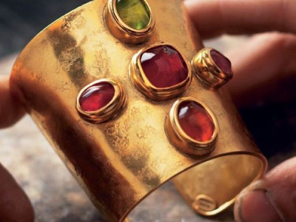 Realizan anillos, pulseras del pie «de vuelta a mano» con ornamento, tobilleras, cruz bizantina, brazaletes de puño con incrustaciones de piedra dura, cascada de perlas, cadenas y pulseras y por supuesto todos los botones.