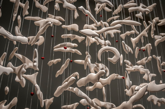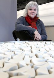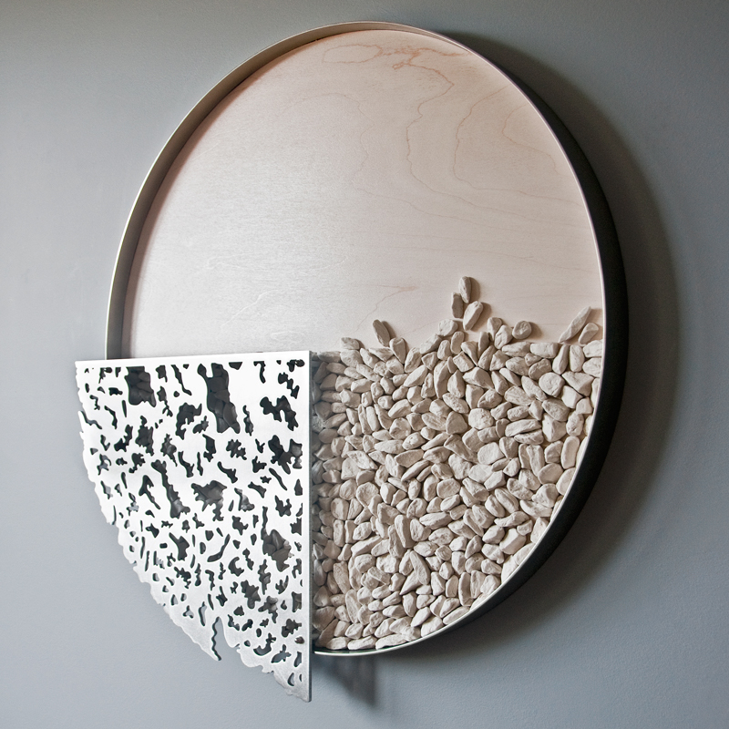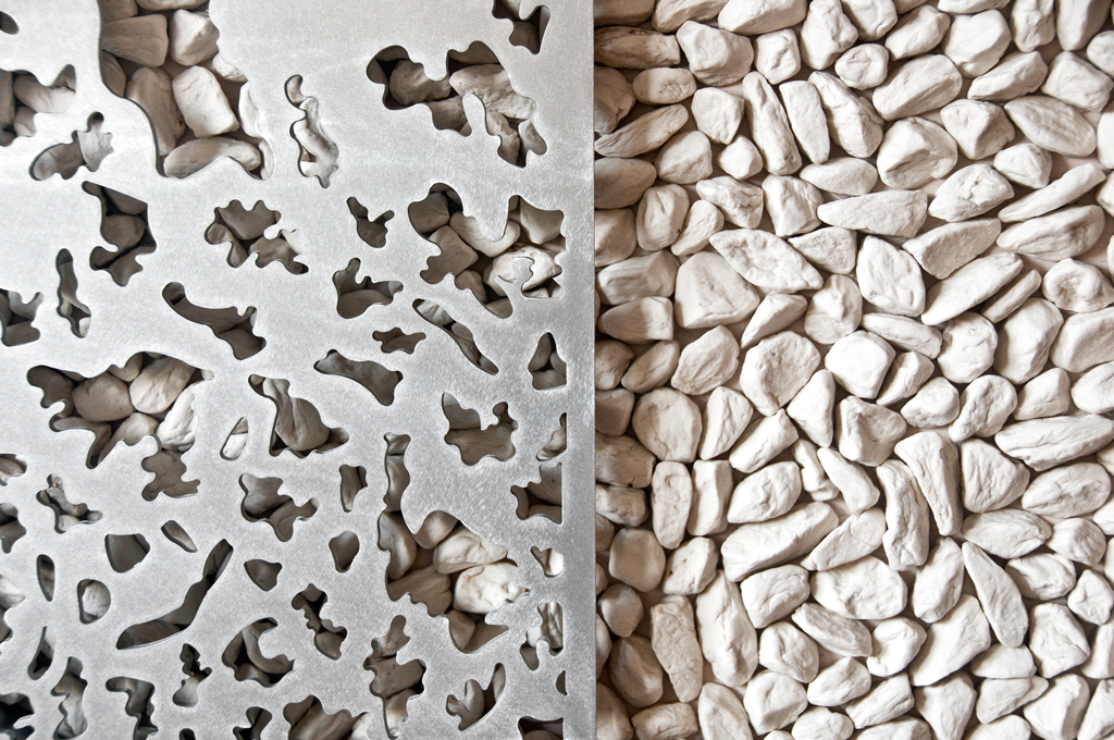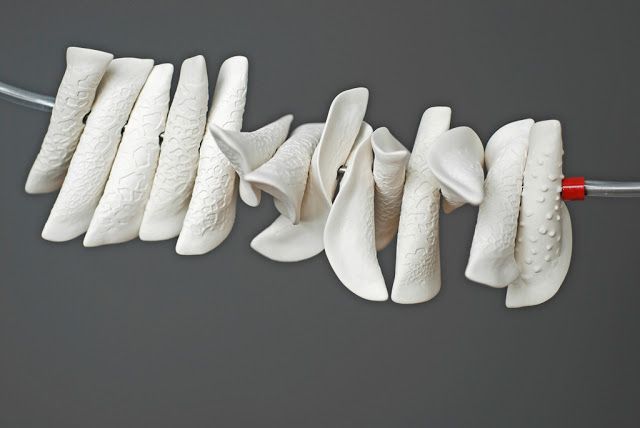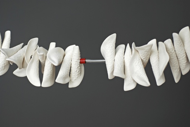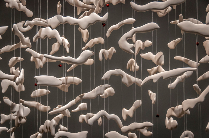También utiliza la porcelana con multitud de elementos que una vez montados crean un espacio gráfico, cuestionando no solo la estructura sino también el movimiento, el ritmo y el tiempo.