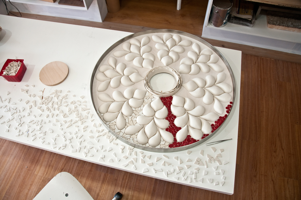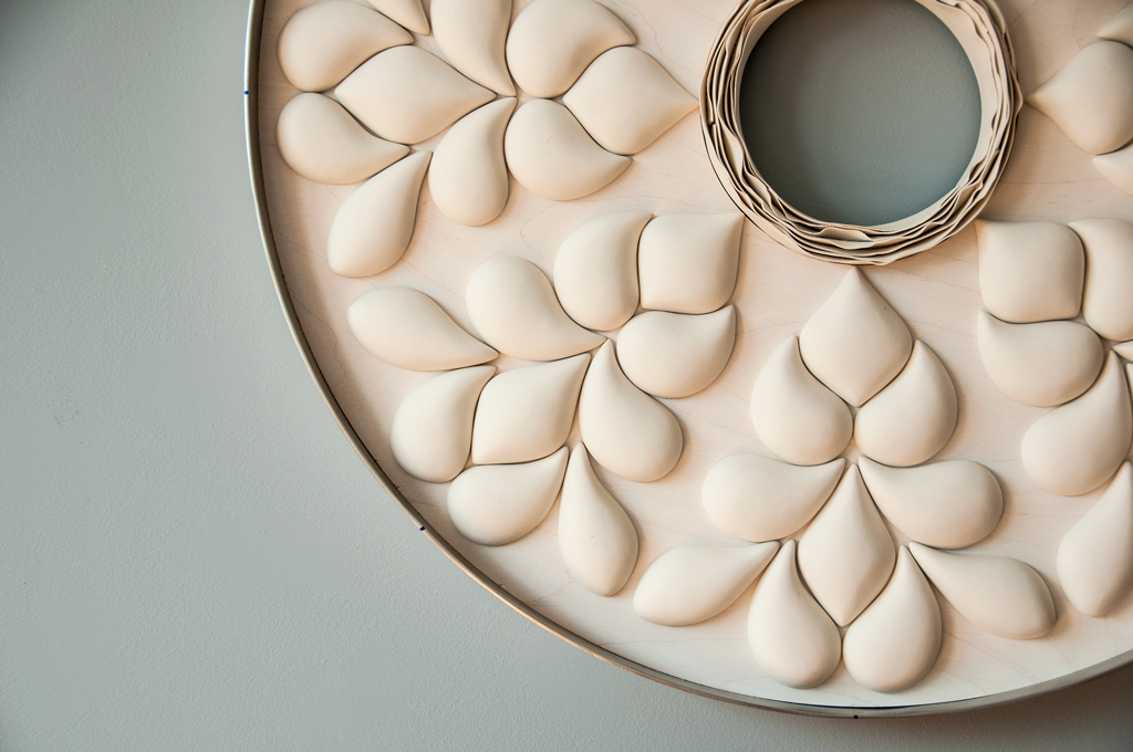 Su exposición y trabajo «Rosetas» es un tema que explora el tondo con relieves, curvas y espirales. Las formas y los patrones están inspirados en la naturaleza, reunidos dentro de un círculo. La organización de los pétalos de la flor, la ondulación del agua y ciertos elementos arquitectónicos que son sus temas favoritos. Sus configuraciones pueden ser interpretadas a diferentes niveles:enlaces a redes que se combinan y desarrollan entre el microcosmos y el macrocosmos.