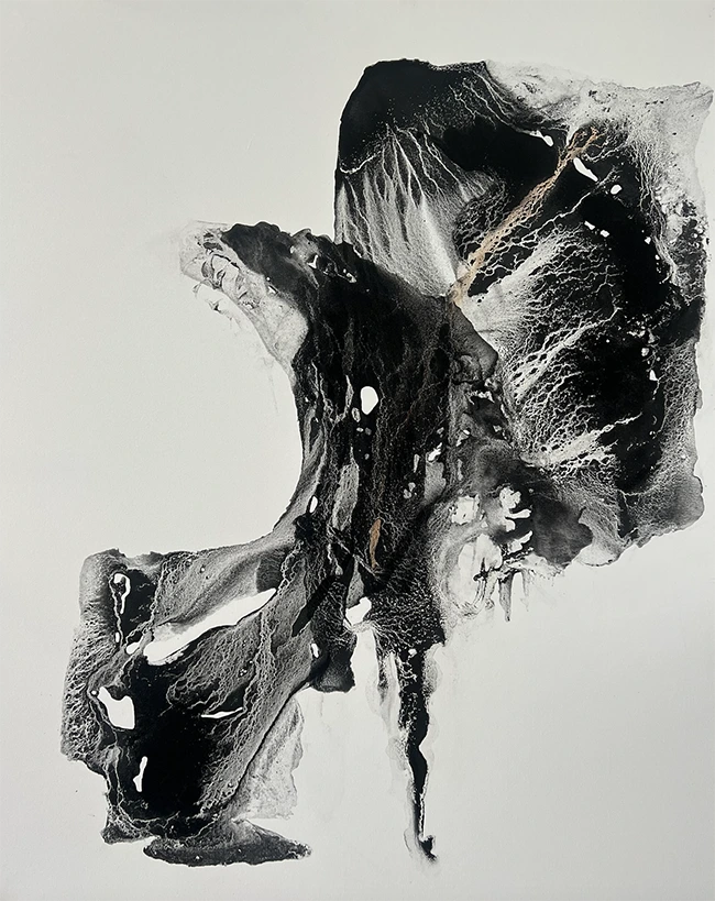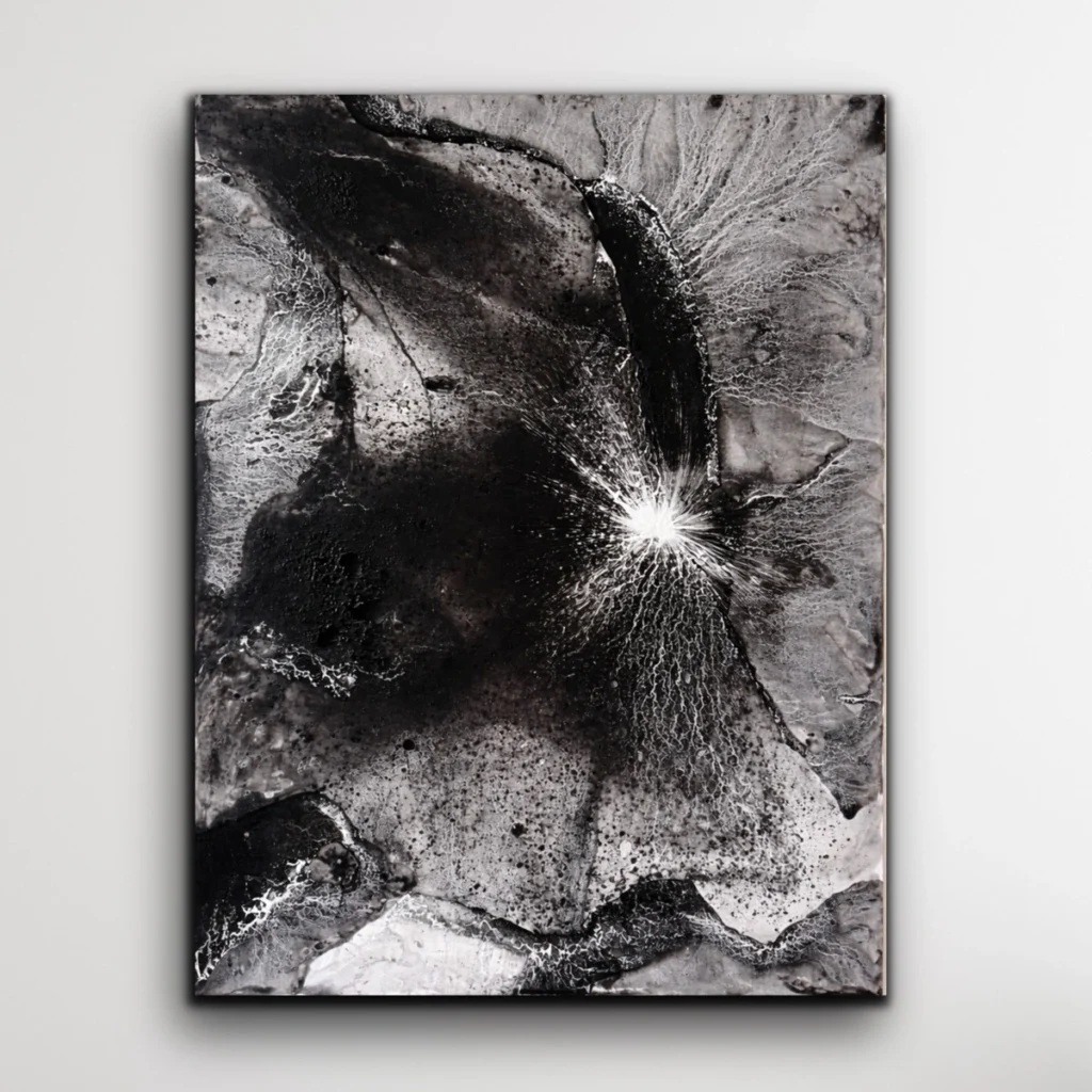 Su obra nos enseña que no hace falta el color para vibrar, ni el orden estricto para sentirnos seguros. Al dejarnos llevar por sus texturas orgánicas y sus mapas de tinta, permitimos que nuestra mente se limpie del ruido exterior. Es un proceso de descompresión; nos sumergimos en su caos para emerger, poco después, con una sensación de ligereza y una paz renovada.