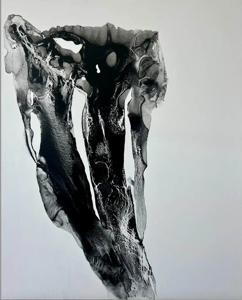 Su paso por la Art Students League of New York y su actual investigación en el Art Students Institute of Chicago la han llevado a despojarse de lo figurativo. Ha pasado de controlar cada punto a colaborar con el caos del agua y el carbón. Esa transición refleja una madurez personal: el paso del control absoluto a la aceptación de la fluidez.