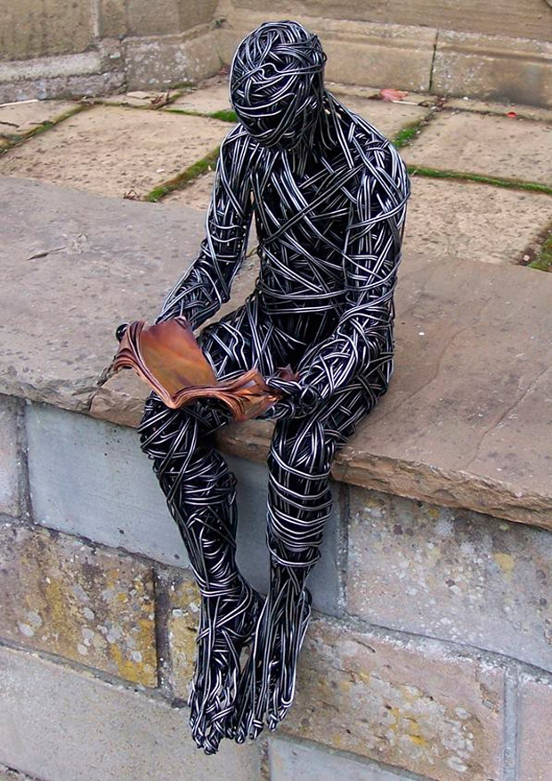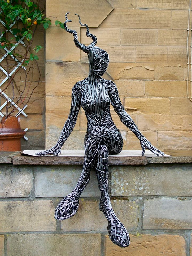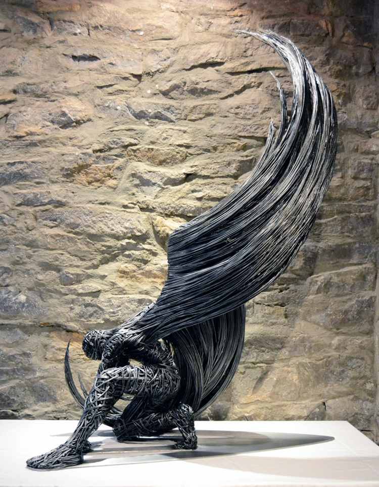 Estas esculturas de alambre están realizadas completamente a mano y Stainthorp tarda entre dos y seis meses en finalizar cada una de sus obras, compuestas por cientos de filamentos metálicos que recrean a la perfección formas humanas y también de la naturaleza.